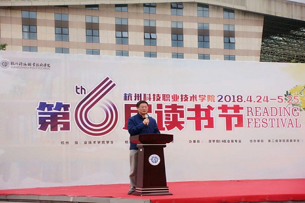 4月24日,我校第六届读书节开幕。何树贵副校长出席开幕式,宣传部、图书馆、学生处等部门负责人,各二级学院党总支书记,师生代表280余人参加了开幕式。