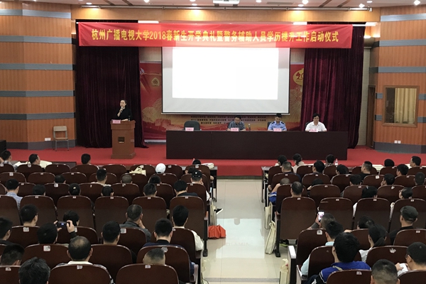 5月5日,我校开放教育2018春新生开学典礼暨警务辅助人员学历提升工作启动仪式在翠苑校区报告厅举行,开放教育学院院长陈志凌、西湖区公安分局政治处副主任王欣,来自西湖区、拱墅区、滨江区的236名就读2018春开放教育各专业的警务辅助人员参加了开学典礼。