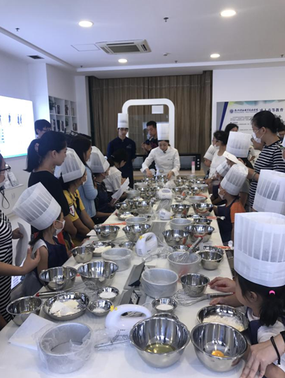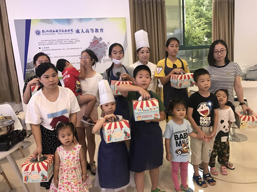 8月25日上午,杭州社区大学DIY亲子烘焙公益课在翠苑校区远教楼一楼学习体验大厅顺利进行,由塞荷法式西点教室创始人柴玮老师教大家学做戚风流心蛋糕,10组亲子家庭参加了本次公益课。