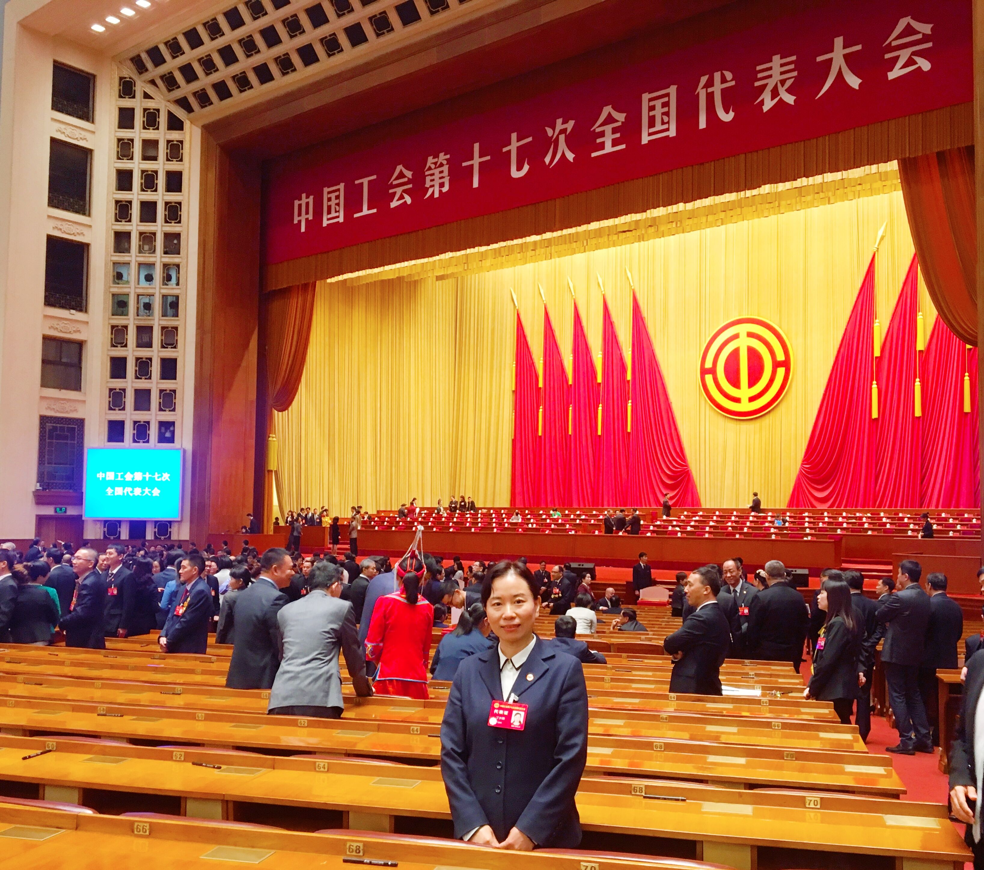 10月22日至26日,中国工会第十七次全国代表大会在北京隆重举行,来自全国各行各业的2000多名中国工会十七大代表和近百名特邀代表出席盛会,我校工会副主席丁水娟老师作为杭州市教育系统的代表出席了本次大会。