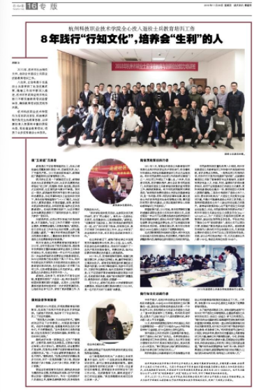为了做好培训服务工作,学校创新性地将“行知文化”用于退役士兵管理服务,注重培养退役士兵学员的生活力、自动力、创造力、学习力和思想力。“陶行知先生创建的浙江省湘湖师范学校是杭科院的重要办学渊源,杭科院一直以来积极秉承陶行知先生的教育思想,在行知文化的引领下推进学校的职业教育、终身教育工作。”杭科院党委书记谢列卫介绍说,学校多年来,数次优化完善退役士兵教育培训工作方案,确保工作不断推陈出新。今年,学校组织专门团队再次优化教学方案,定制就业创业辅导体系,积极架设退役士兵和用人单位之间的就业通道,“陶行知先生说要培养会‘生利’的人物,学校开展退役士兵培训,就是要培养好他们的生利能力,让他们成为有生利本领、有利他之心的有用人才。”