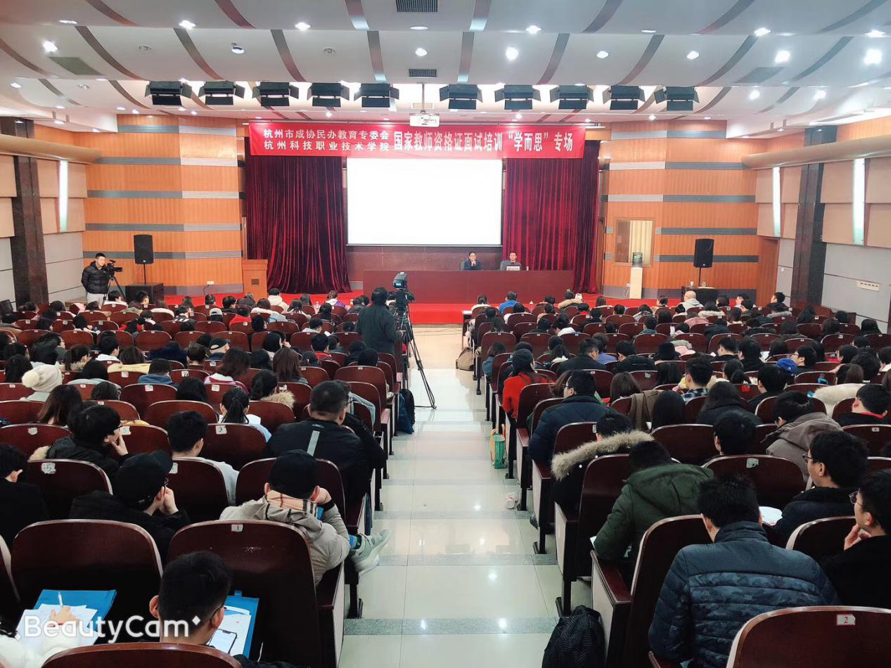 为贯彻执行国办80号文件精神,进一步规范民办培训学校的教学管理,维护良好教学秩序,提高教学质量,确保民办培训学校教师的教师资格证持证率,12月24日上午9点,我校继续教育学院联合杭州市成协民专会举办国家教师资格证面试“学而思”专场培训。
