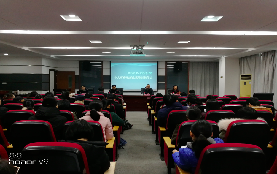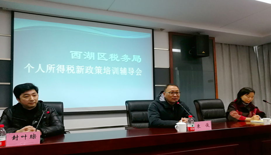 1月7日上午,为便于广大教职工全面了解本次个人所得税改革新政,确保充分分享国家个人所得税改革红利,杭州市西湖区税务局专家封叶琮、应越儿应邀来校讲解新政、指导操作、答疑解惑。副校长袁俊出席会议,各职能部门(二级学院)办公室主任、财务联络员、教师代表及校属企业相关人员等参加此次会议,会议由计划财务处处长丁水娟主持。
