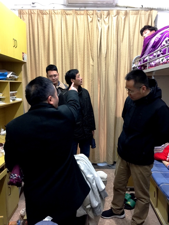 1月9日,赵悦林副校长还带领教务处、学生处、公共事务管理处、保卫处等相关职能部门对高桥校区实验实训基地、高配间、食堂、寝室等安全重点部位通过实地走访、查阅台账等方法开展安全大检查,在实训实验室发现使用物品堆放不规范、安全围栏设施不全等问题,要求即查即改,并强调每次的安全检查工作一定要做好台账登记和问题梳理,落实好整改后的督查工作。