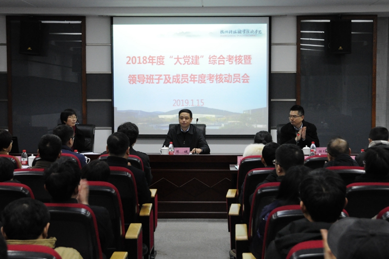1月15日,我校召开2018年度“大党建”综合考核暨领导班子及成员年度考核会,杭州市委组织部副部长、市委人才办常务副主任陈键带领杭州市党建考核组一行9人对我校2018年度“大党建”工作暨领导班子及成员开展考核。我校全体校级领导、全体中层干部、校属企业负责人、民主党派负责人、双代会主席团成员、正高级专业技术职务人员代表等参加会议。校党委书记谢列卫主持会议。