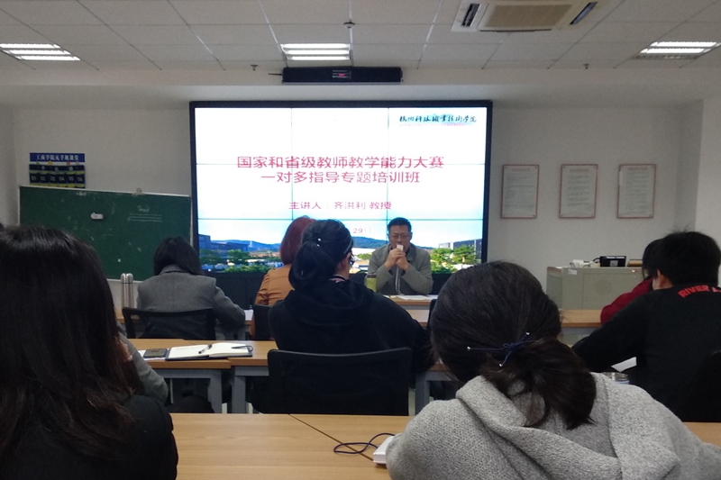 我校2018年浙江省教师教学能力比赛一等奖获得者,机电工程学院王金莲老师作为特邀讲师,在培训会上展示了团队参赛作品,受到齐洪利和广大教师的一致好评。