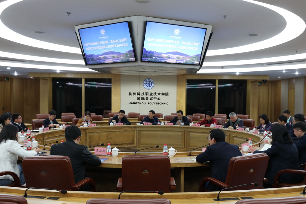 4月15日,杭州市财政局机关第五支部毛克熊处长一行16人来我校与直属党总支开展主题党日共建活动。副校长寿伟义和直属党总支相关人员参加了活动,活动由校直属党总支书记柳浒主持。