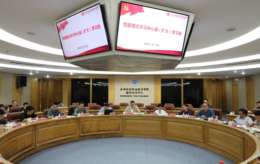 5月10日,我校召开党委理论学习中心组(扩大)学习会,集体学习习近平总书记在纪念五四运动100周年大会上的重要讲话精神,传达全国、省、市教育大会,全省高校党的建设和思想政治工作会议精神。党委理论学习中心组全体成员、全体中层干部参加学习会。学习会由党委书记谢列卫主持。