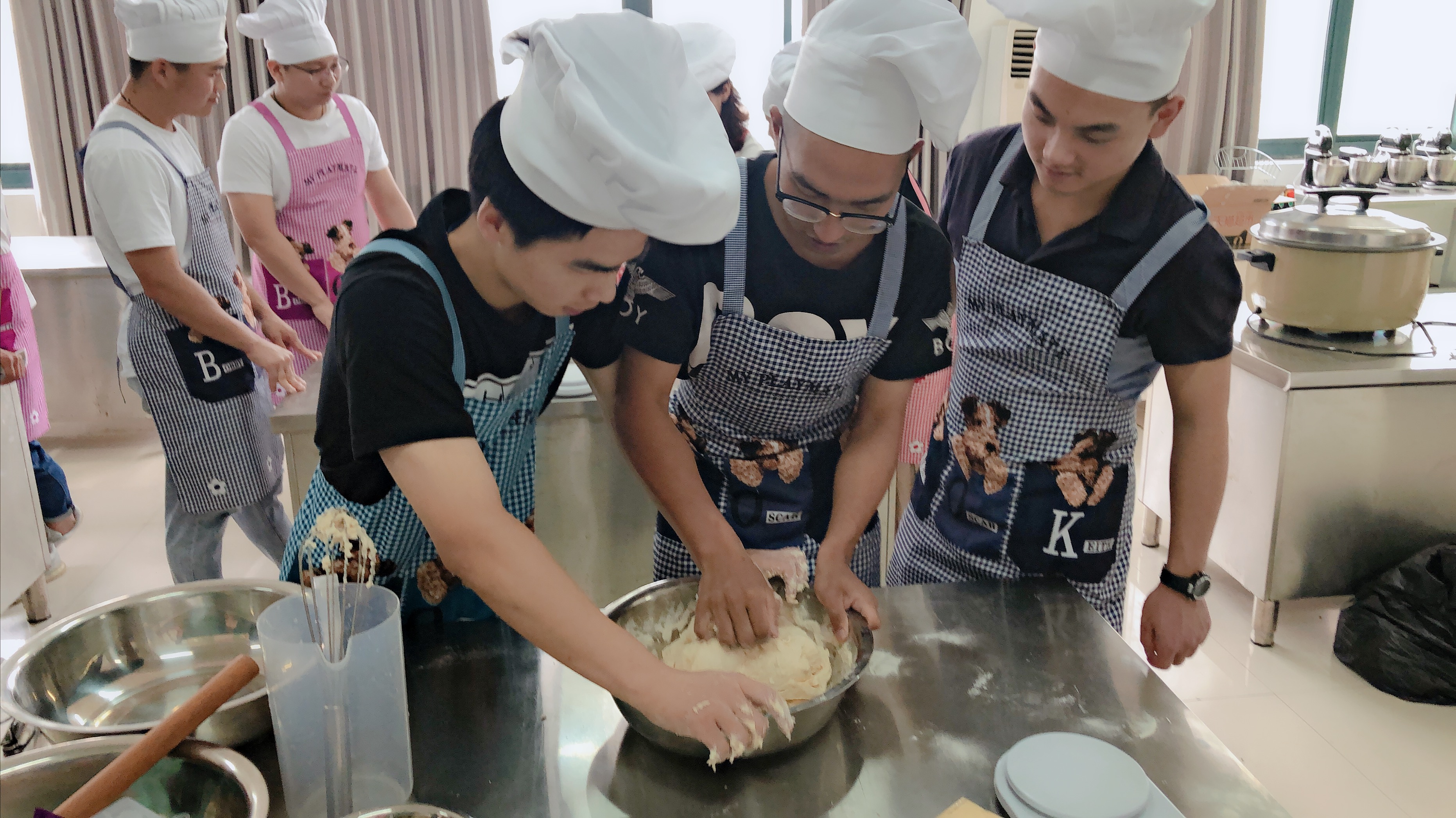 在老师的指导下,学员们完成了肉包子和鲜奶蛋糕卷的制作。在活动中,学员们体现出了很强的动手能力,第一次捏面团的学员,也很好地完成了任务。在活动接近尾声时,学员们自觉地收拾整理清洗自己用过的炊具并归位。在活动结束后,20名来自不同年级不同专业学员建立了微信群,表示要继续交流,共同进步。