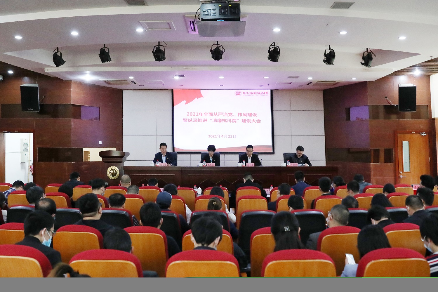 |  4月21日下午,2021年全面从严治党、作风建设暨纵深推进“清廉杭科院”建设大会在陶研馆报告厅召开。学校党委书记谢列卫,驻市教育局纪检监察组组长王秀清出席会议并讲话,全体校级领导、中层干部、校纪委委员及党总支纪检委员、教师及民主党派代表参加,会议由学校党委副书记何树贵主持。  谢列卫指出,2021年是学校实施“创一流”内涵建设三年行动计划的关键之年,是省“双高计划”项目建设的第一年,是学校“十四五”事业发展规划全面实施的开局之年。他要求,全校广大党员干部要以习近平新时代中国特色社会主义思想为指导,深入学习贯彻习近平总书记对职业教育工作作出的重要指示精神,深入贯彻落实中央、省市纪委全会和全市作风建设大会精神,深入开展党史学习教育,以“学、谋、转、比”为工作主线,进一步深化全面从严治党和作风建设,推进“清廉杭科院”建设。为做好今年的工作,他强调提出,一要以政治建设为统领,切实做到“两个维护”;二要落实好“四责协同”,确保党风廉政建设落到实处;三要深化作风建设,强化担当尽责;四要纵深推进“清廉杭科院”建设,扎实实施四大工程;五要深化监督执纪,筑牢风险防范;六要加强纪检队伍建设,打铁还需自身硬。  王秀清肯定了我校党委、纪委全面从严治党、作风建设和推进“清廉杭科院”建设的工作成绩,表示我校党委的决心是坚定的、思路是全面系统的、推进的措施是扎实可靠的,校纪委协助推动落实是下功夫的、创新举措的监督是有力的,体现了“监督是最大的关爱”。她强调“清廉学校”的建设是一项复杂系统的工程,以推进“清廉杭科院”建设为实现全面从严治党、作风建设的落脚点,提出认识再提升、措施再加强、责任再压实三个方面的具体要求,倡导要站在重要窗口的政治高度,推进“清廉杭科院”建设取得更好的成效。  校纪委书记高云飞总结了2020年纪检工作,对2021年的工作,从提高政治站位、完善“四责协同”机制、高压态势持续正风肃纪、系统纵深推进清廉建设、加强纪检队伍建设等五个方面提出要求,强调要继续围绕纪检工作高质量发展的主题,以纵深推进“清廉杭科院”建设为主线,完善“四责协同”机制,一体推进“三不”,努力打造山清水秀、风清气正的校园政治生态,为学校事业高质量发展提供坚强的作风和纪律保障。 会议观看了警示教育片,举行了2021年党风廉政建设责任书签署仪式,谢列卫书记与班子成员代表签订责任书,班子成员代表与分管处室、联系二级学院(部)签责任书。    |