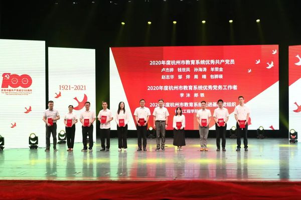 大会对2020年度先进基层党组织和优秀个人予以表彰。其中王金莲同志获浙江省高校优秀共产党员称号;钱世凤同志获浙江省高校优秀党务工作者称号。胡桐春同志获杭州市优秀党务工作者称号;卢杰骅等8名同志获杭州市教育系统优秀共产党员称号;李沐等2名同志获杭州市教育系统优秀党务工作者称号;原机电工程学院党总支获杭州市教育系统先进基层党组织称号。徐永刚等26名同志被评为校级优秀共产党员;柳浒等17名同志被评为校级优秀党务工作者;机电工程学院等4个党总支荣获校级先进党总支称号;城市建设学院党总支“市政+”等11个支部荣获校级先进党支部称号。