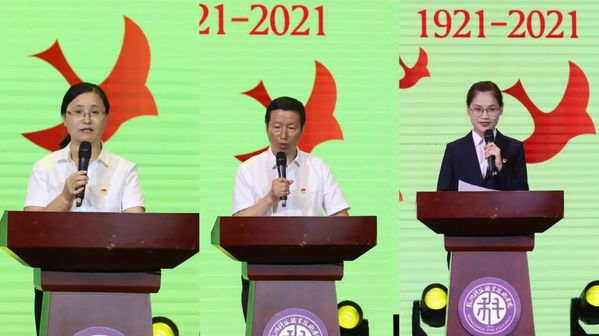 城市建设学院党总支书记钱世凤,基础教学部数学体育党支部书记胡桐春,学生党员应嘉敏分别在大会上作交流发言,深刻表达了对党对祖国的忠诚与热爱,和把个人理想融入党的伟大事业中,为中华民族伟大复兴贡献力量的决心。