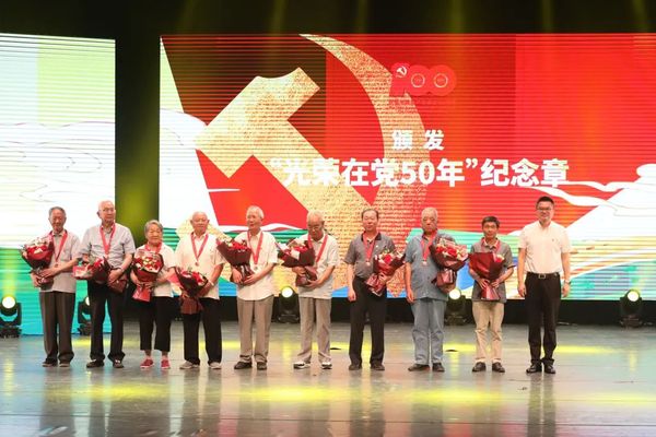 大会举行“光荣在党50年”纪念章颁发仪式,为全校党龄满50周年的老党员代表颁发纪念章,激励引导广大师生向老党员学习,勤勤恳恳为党工作、踏踏实实为民服务,不忘初心、牢记使命,以实际行动向建党100周年献礼。余则楠、邬学泰、肖莲英、江三侬、李耀东、陈光明、傅权章、倪瑞峰、曹炳炎、黄欣等老党员代表全校30位“光荣在党50年”纪念章获得者在现场领奖,谢列卫向老党员颁发纪念章。