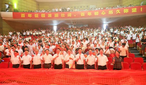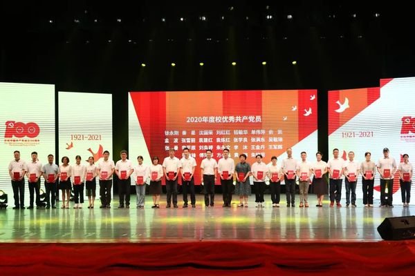 百年征程波澜壮阔,百年初心历久弥坚。6月29日,我校隆重召开庆祝建党100周年暨“七一”表彰大会,祝福中国共产党百年华诞,表彰表现突出、成绩优异的优秀共产党员、党务工作者和先进党组织,向“光荣在党50年”的老党员颁发纪念章。校党委书记谢列卫做题为“赓续精神、汲取力量,为奋进‘十四五’新征程贡献党员力量”的七一专题党课。全体校级领导出席,全体中层干部、师生党员,离退休党总支、支部书记,“光荣在党50年”党员代表、入党积极分子代表参加。