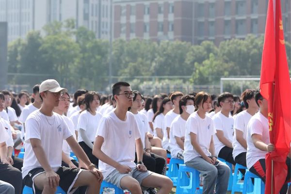 在激昂雄壮的国歌声中,鲜艳的五星红旗冉冉升起,全场师生行注目礼,开学典礼正式开始。