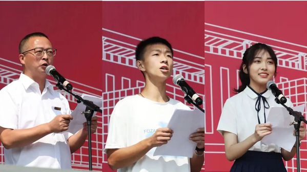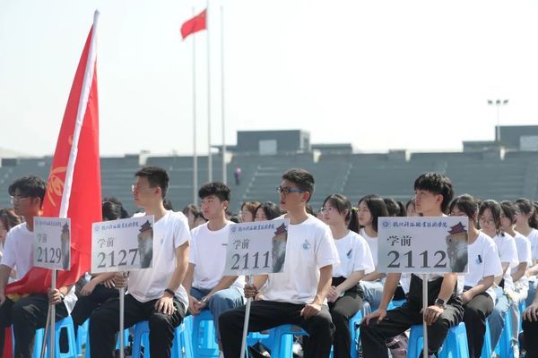 学前教育学院姚天鹰代表全体新生发言,号召大家树立远大志向,用行动丈量青春梦想,努力收获团结友爱的师生情谊,书写属于自己的杭科故事。