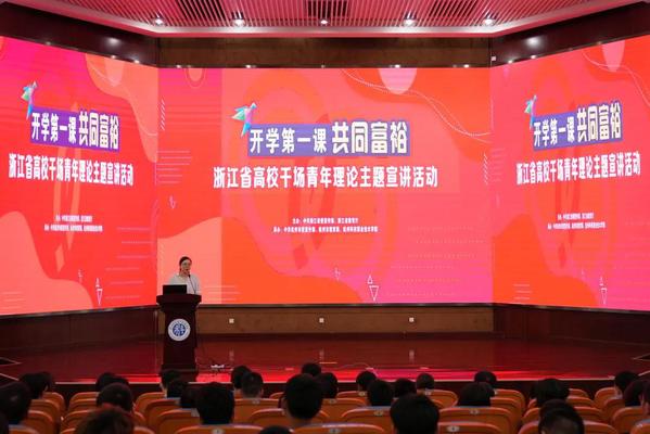 9月24日,“杭州市高校青年理论主题宣讲团”的8位老师来到我校,为同学们带来了精彩的“开学第一课”,讲述“共同富裕”的美好故事。