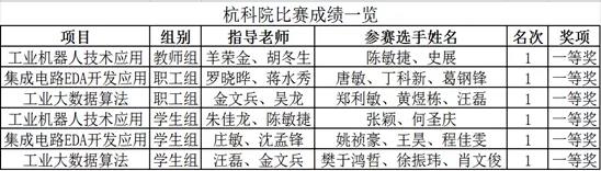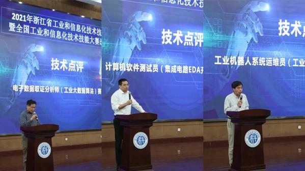 经过激烈比拼,大赛共角逐产生25个奖项。其中张志红等70人分获工业机器人系统运维员(工业机器人技术应用)赛项职工组、教师组、学生组一、二、三等奖;刘雪春等72人分获计算机软件测试员(集成电路EDA开发应用)赛项职工组、学生组一、二、三等奖;王新桃等69人分获电子数据取证分析师(工业大数据算法)赛项职工组、学生组一、二、三等奖;朱佳龙等12人获优秀指导老师奖项。杭州科技职业技术学院、温州职业技术学院等9家单位获评“优秀组织奖”;杭州科技职业技术学院、嘉兴南洋职业技术学院等9家单位获评“团体总分奖”;杭州科技职业技术学院、杭州市富阳区经济和信息化局等9家单位获评“突出贡献奖”。我校的六支参赛队伍获得大满贯,在各赛项参赛组别中均以第一名的好成绩获得一等奖。