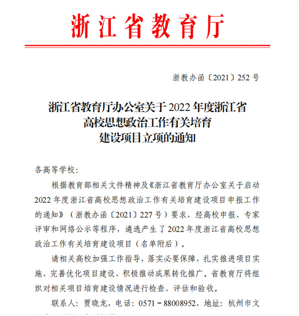 近日,省教育厅公布2022年度浙江省高校思想政治工作有关培育建设项目立项结果,我校物联网技术学院吴龙老师成功入选“2022年度浙江省高校网络教育名师培育支持计划立项名单”。