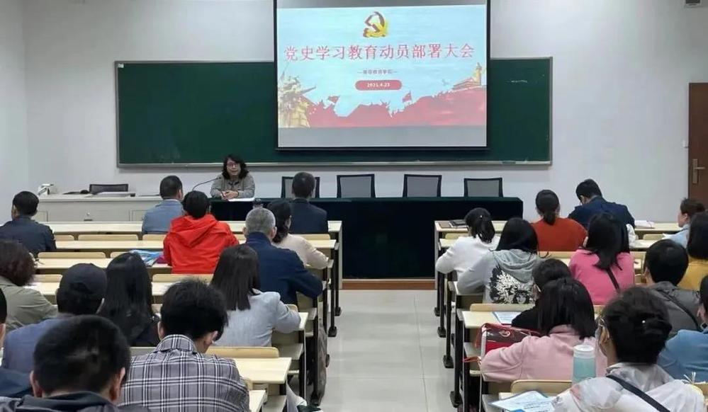 4月23日,开放教育学院召开党史学习教育动员部署会。学院领导班子、全院党员、全体教工参加了会议。