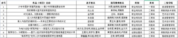 物联网技术学院沈心发同学的《我的青春从蓝天绽放到蓝焰突击》获高职高专组职业规划类二等奖;物联网技术学院肖文俊、吴怡柯、胡高运、金学婷同学的《为电力巡检“保驾护航”——新型无人机设备先行者》,王晨光、陈梦乐、曹琦同学的《智享在口,冷暖智知!基于人脸识别和语音声控的智能调温空间设计师》获高职高专组创新创意类二等奖;艺术设计学院金烈辉同学的《时光清浅,光影潋滟——摄影师的告白》,旅游管理学院朱佳丽同学的《注入乡间孩童艺术灵魂的“姆妈”》获高职高专组职业规划类三等奖;智能制造学院薛鑫鑫、韩泽超、颜桂洋同学的《“高质养生”老年人多功能智能居家养生健身器》获高职高专组创新创意类三等奖;艺术设计学院邵芙蓉同学的《做人与自然的调和剂——未来社区景观设计师成长记》,旅游管理学院杨双庆同学的《创意与孵化——IP的幻想工厂》获高职高专组职业规划类优胜奖。