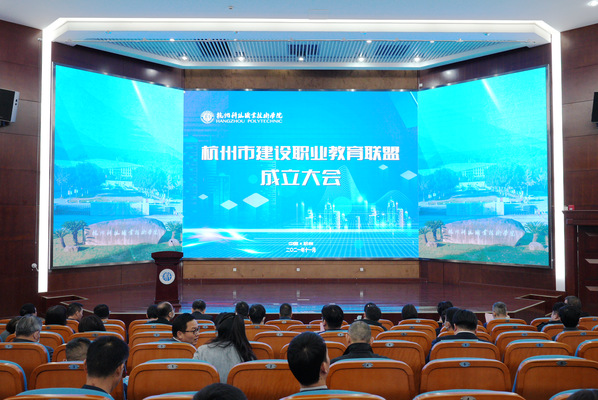 11月12日,杭州市建设职业教育联盟成立大会在我校召开。杭州市城乡建设委员会党组书记、主任楼建忠,组织人事处处长徐玲燕,市场处处长郭群,建筑业管理站站长赵斌,富阳区住房和城乡建设局党委书记、局长金志国等建设主管部门领导,杭州科技职业技术学院党委书记谢列卫、校长温正胞、副校长寿伟义出席会议。浙江工业大学土木工程学院院长孙宏磊等7家院校代表,杭州市市政行业协会秘书长余建民、中国联合工程有限公司党委副书记张钰等50余家行业协会、企业成员代表,原杭州城市建设学校校长、城建校友分会总顾问郑美金及城市建设学院师生代表参加了大会。大会由杭州建筑业协会副秘书长杜江萍主持。