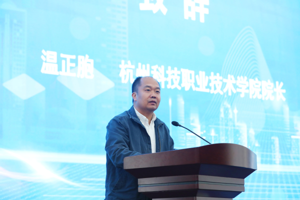 温正胞致欢迎词,介绍了我校基本概况、发展规划和城市建设学院专业建设特色。他表示,联盟的成立必将实现“政-行-校-企”多方面、多层次、多形式的合作交流和共建共享,推动杭州市建设职业教育深化资源整合,加强协同育人,实现协调发展。“大家同心协力,共同培养满足未来社区、轨道交通、城市管廊等智慧城市基础设施建设的高素质技术技能人才,为杭州的社会经济发展做出积极贡献”。
