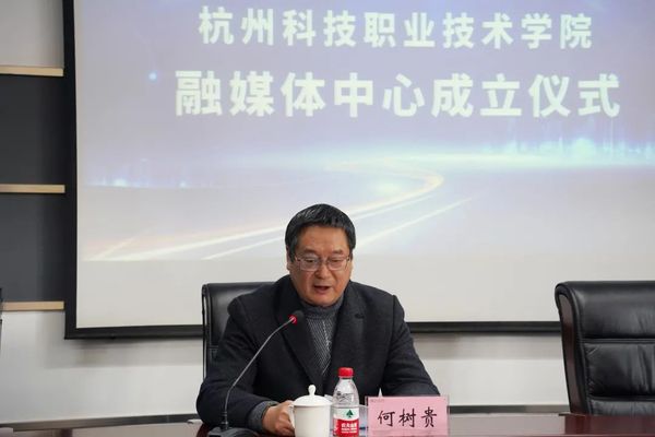 何树贵表示,在中国共产党诞辰100周年,全国上下深入学习贯彻党的十九届六中全会精神,开展党史学习教育的重要时刻,在“十四五”开局之年,学校实施“创一流”内涵建设三年行动计划的关键之年,杭州科技职业技术学院融媒体中心的成立具有重要意义,“这标志着我校媒体工作融合发展进入新阶段,实现传统媒体与新兴媒体大合唱迈出新步伐”。何树贵对中心建设提出三点希望:一要提高政治站位,增强“四个意识”,坚定“四个自信”,做到“两个维护”,不断讲好杭科故事,传播杭科好声音,弘扬杭科正能量;二要迅速转变角色,顺应时代发展大势,加强传播手段和话语形式创新,积极探索“融媒体+思政”建设,进一步打造立德铸魂的育人高地;三要扛起时代责任,紧扣学校中心工作,用鲜活的镜头记录下杭科院的奋进故事,进一步提升杭科院的知名度、美誉度和社会影响力。