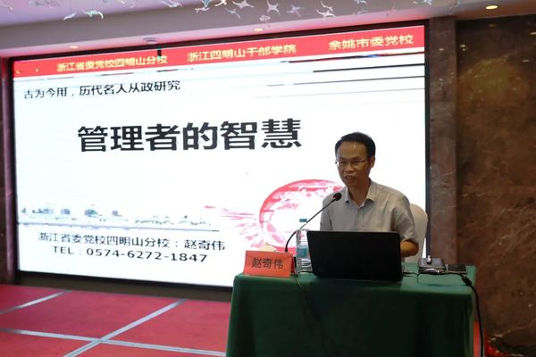 省委党校四明山分校副校长赵奇伟作《历代名人从政研究:管理者的智慧》专题授课;党校教育科科长吴小华以《从党章发展看百年大党的成功密码》为题,介绍党的发展历程;党校教师黄信良介绍了王阳明心学思想及其当代价值。