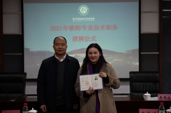 温正胞向授聘教师表示祝贺,并对授聘教师提出了三点要求:一是正确看待职称和水平的关系,“学术生涯无止境,职称晋升的老师不能懈怠”,要把本次聘任作为新的起点,不断提升自身专业技术水平,增强绝对实力;二是思考个人发展和学校发展的关系,个人发展要与学校发展、学院发展同频共振,紧密联系,“希望授聘教师起到带头作用,为学校的发展做出更加积极的贡献”;三是坚守职业操守和学术规范,坚持立德树人,争做“四有”好老师,在本职岗位上做好育人工作,实现人生价值。