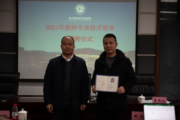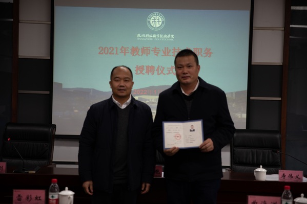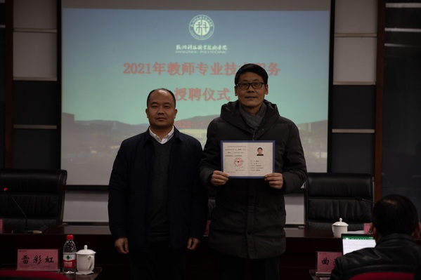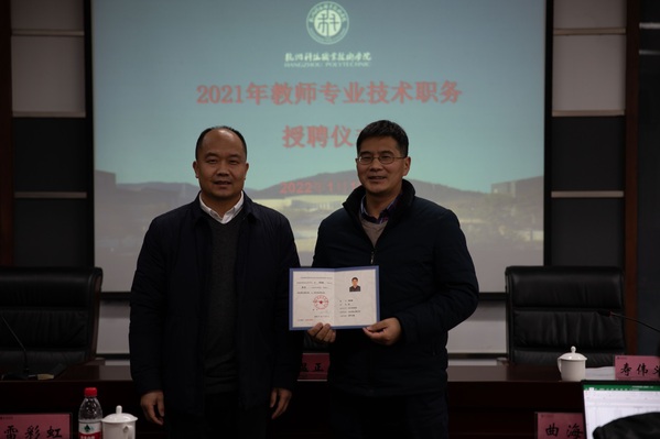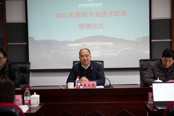 1月10日,我校举行2021年教师专业技术职务授聘仪式。校长温正胞为晋升教师颁发聘任证书并讲话,副校长寿伟义宣读专业技术职务聘任文件。人事处、教务处、科技处、学生处负责人及2021年晋升专业技术职务的教师参加了授聘仪式。