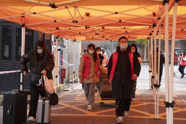 2月20日是高桥校区、严州校区学生返校日,共有7000余名同学回到熟悉的校园,开始新一年的学习生活。校长温正胞,副校长寿伟义、赵悦林来到高桥校区报到点迎接同学们的到来,送上新学期的关心与祝福。温正胞详细询问了学生回校防疫工作的落实情况和学生返校进度,特别是省外学生的返校交通安排,要求各部门、学院做实做细疫情防控的各个环节,“始终将同学们的健康安全放在工作首位”。