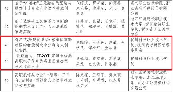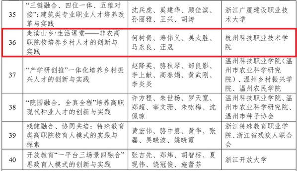 杭州科技职业技术学院“省教学成果奖”获奖名单
