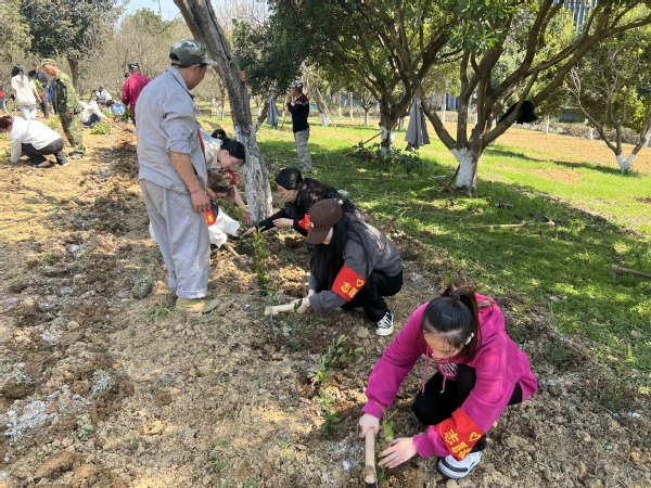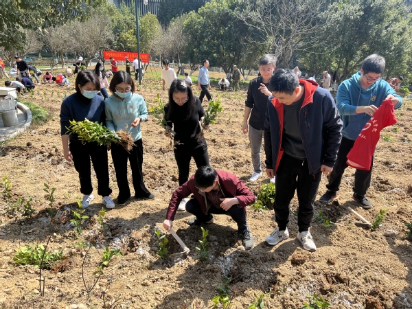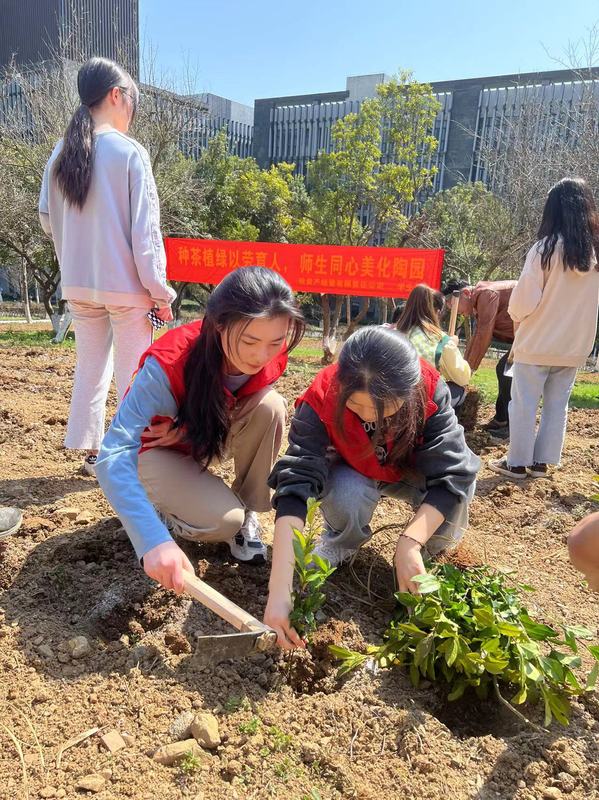 3月11日,在植树节来临之际,我校开展“美化陶园以劳育人”植树节种茶植绿活动。校党委书记谢列卫与100多名师生在陶园种下6000 株茶苗,共同播种希望,期许丰收。