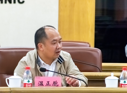 温正胞致欢迎词,并向各位领导介绍了我校的办学情况。他认为召开这样一个“产教协同、创新发展的研讨会是极其有必要且有意义”。