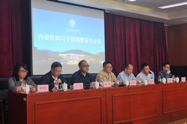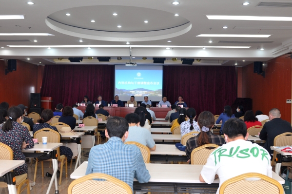 罗明誉宣读了学校内设机构调整设置和干部调整相关文件。