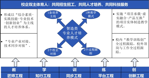 作为浙江省双高专业群A类核心专业、教育部骨干专业、国家装备类示范专业点、教育部第三批现代学徒制专业和浙江省优势专业,我校数字化设计与制造技术专业秉持“错位发展,打造特色”的办学理念,以专业职业能力培养为主线,面向数字化设计、智能化制造、精益化管理等技术领域,对接企业对数字化设计与制造技术的职业素养及核心能力的要求,与海康威视、大华、友成模具等行业领军企业开展深度合作,实施人才培养“1212”全过程跟踪,坚持“教-学-训-练-创”五位一体现代学徒制人才培养模式,精心培养“懂技术、精技能、擅创新、德业兼修、手脑双挥”的高素质技术技能型“数字化人才”,着力打造数字化设计与制造技术高素质技术技能型人才的培养高地。