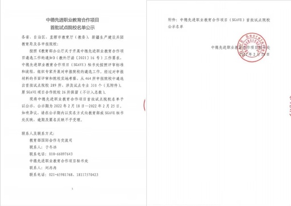 近日,教育部国际合作与交流司公布了《中德先进职业教育合作项目(SGAVE)首批试点院校名单》,我校数字化设计与制造技术专业成功入选智能制造领域首批试点单位和专业。