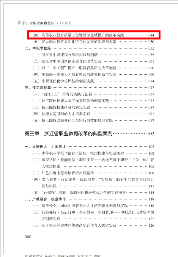 《浙江省职业教育蓝皮书(2020)》由浙江省职教社组织编撰,系统总结了省域层面的职业教育经验和亮点,我校杨悦梅、吴建设老师编写的“高等职业教育质量工程暨教学业绩提升的改革实践”案例也收录其中。