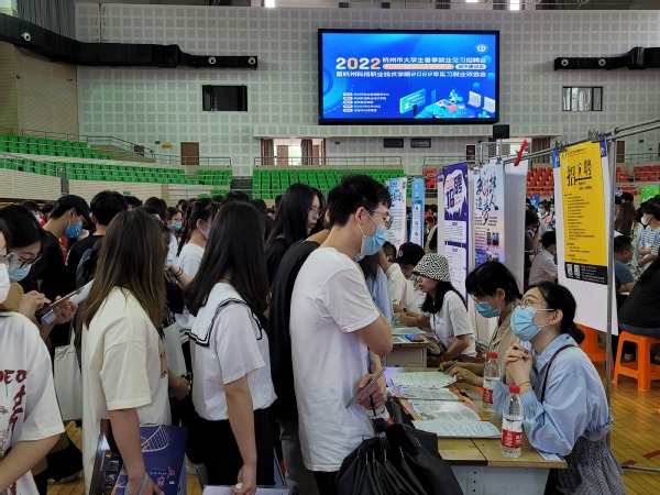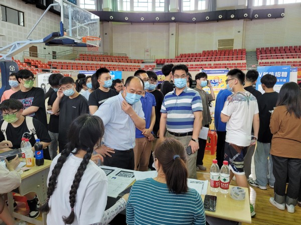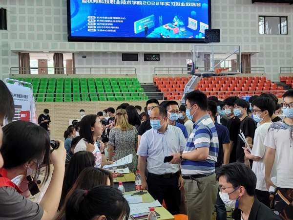 会后,温正胞和企业代表共同来到2022杭州市大学生春季就业见习招聘会杭州科技职业技术学院城市建设类专场暨杭州科技职业技术学院2022年实习就业双选会现场,与参加招聘的企业单位和应聘学生亲切交谈,详细了解就业实习情况。