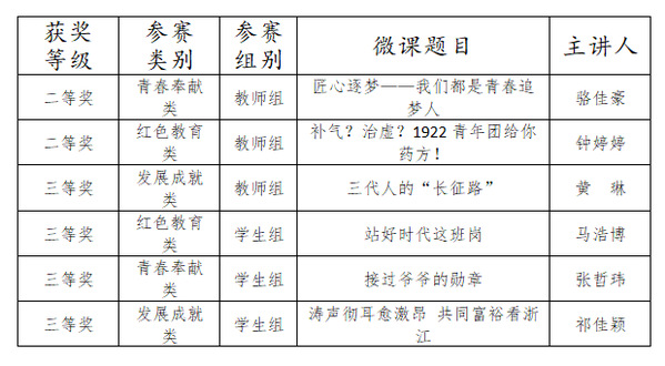 近日,由共青团浙江省委、浙江省教育厅、浙江省学生联合会主办的2022年浙江省高校思政微课大赛落下帷幕,我校报送的6件作品经过激烈角逐全部获奖,共获二等奖2项、三等奖4项。