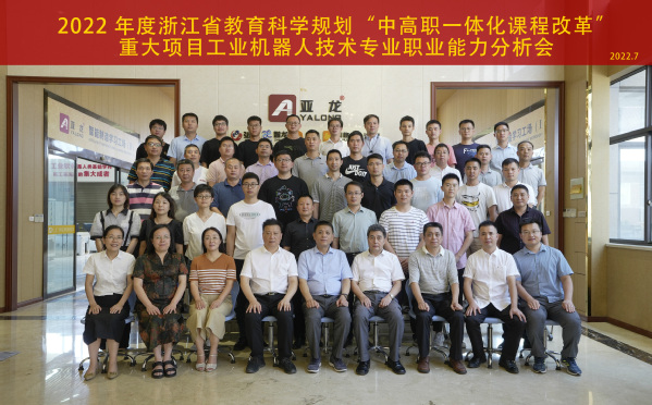 7月22日,浙江省教育科学规划重大项目(“从能力到课程:工业机器人技术专业中高职一体化课程改革研究”)暨课改工作推进会在浙江温州采用线上线下结合的方式举行。机械工业教育发展中心主任、机械行指委主任、中国机械工业联合会教育培训部主任陈晓明,浙江省教育科学研究院副院长程江平,杭州科技职业技术学院院长温正胞,浙江省机器人产业发展协会常务副会长王国耀,浙江亚龙教育装备股份有限公司董事长陈继权,浙江工业大学刘辉,杭州市教育科学研究院副院长洪彬彬等来自国内行业、中高职院校和企业的76名代表参加本次会议,会议由教务处长雷彩虹教授主持。本次会议持续3天,主要针对工业机器人技术专业人才需求、专业教学标准、职业能力等内容开展汇报与研讨。