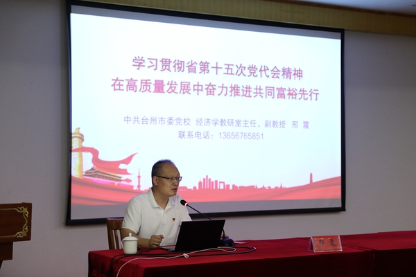 台州市委党校校委委员丁云来作《中国当前面临的国际局势》专题讲座,介绍中国当前面临的国际局势,解读中国当前外交政策的目的和意义。党校经济学教研室主任、副教授邢震从对“共同富裕先行”的理解、探索促进共同富裕的有效路径等方面解读省第十五次党代会精神。