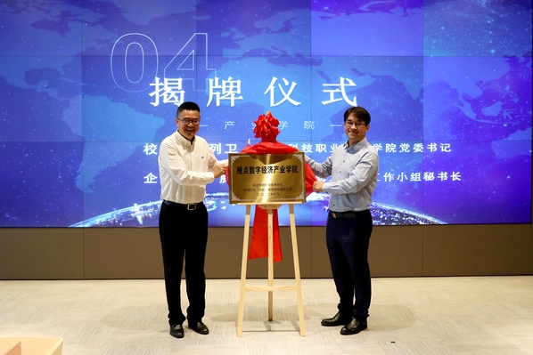 (谢列卫、仝腾为“阿里巴巴橙点数字经济产业学院”揭牌,并代表双方互赠纪念品)