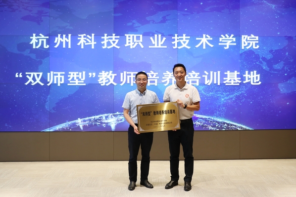 (潘建峰、张雷为“双师型”教师培养培训基地、新零售管理实训实习基地、新零售管理培训基地授牌)