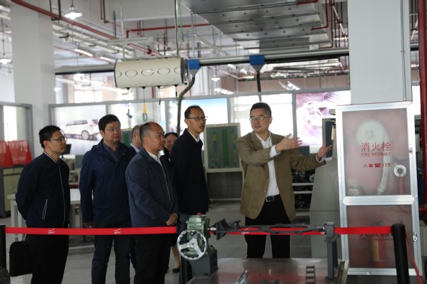 座谈会前,胡华一行前往校园中轴线文化景观带、校史馆、智能制造学院实训基地等处参观,对我校校园文化建设和产教融合发展表示充分肯定。