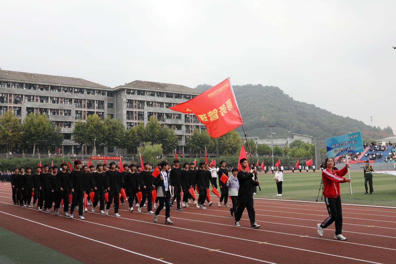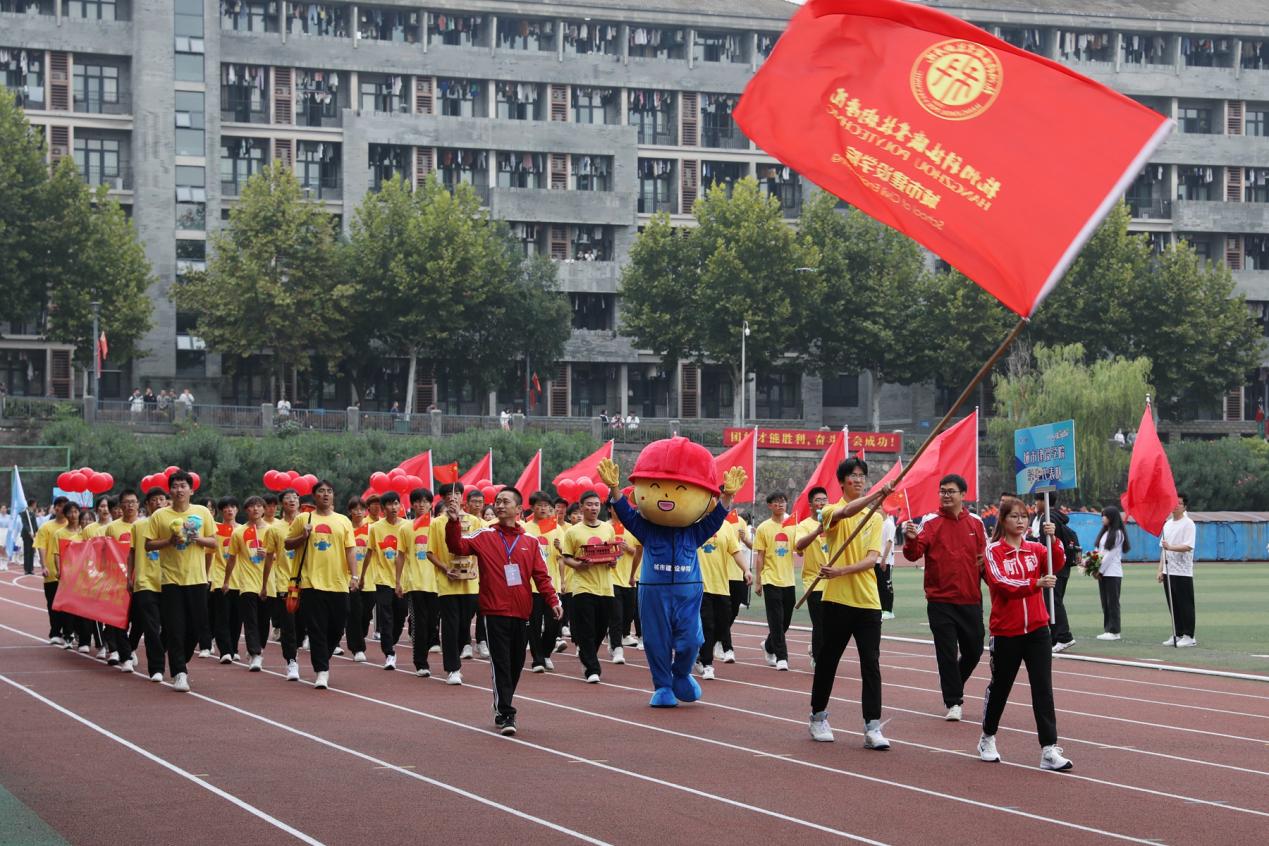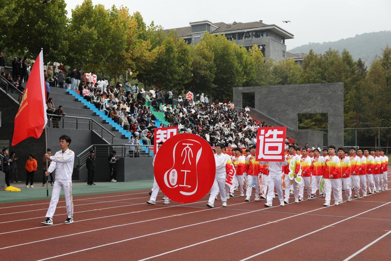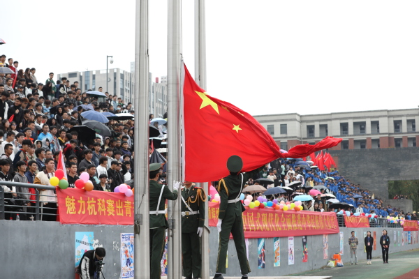 伴着运动员进行曲,22支代表队运动员在旗手的引领下,迈着坚定的步伐从主席台前昂首走过。师生们步履铿锵,口号嘹亮,以饱满的精神状态和运动热情展现出杭科人“手脑双挥、匠心致远”的特色与风采。