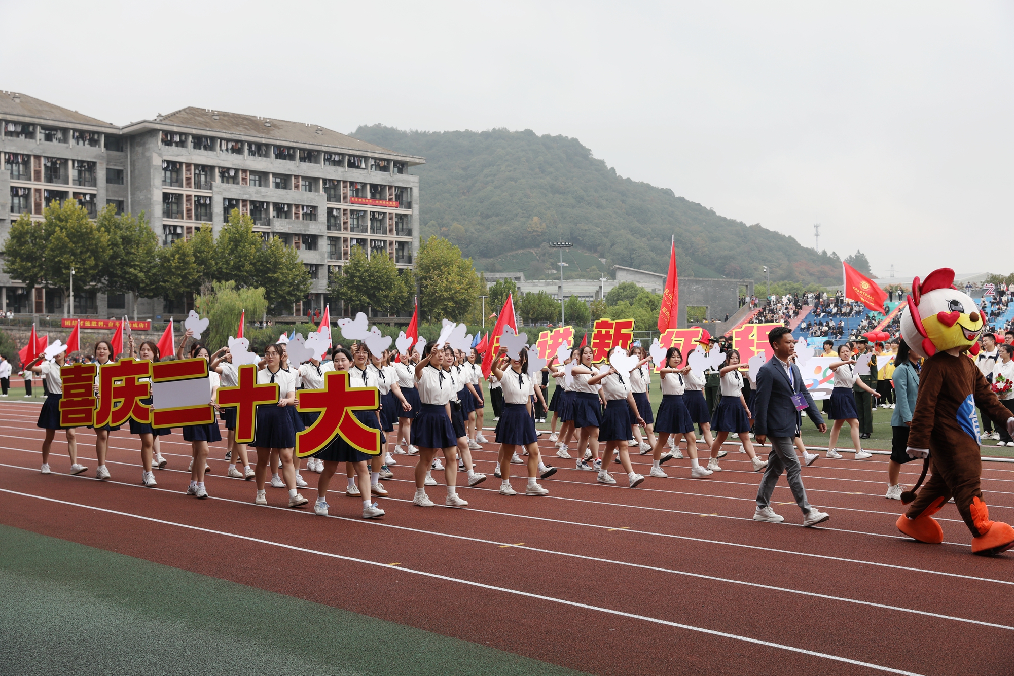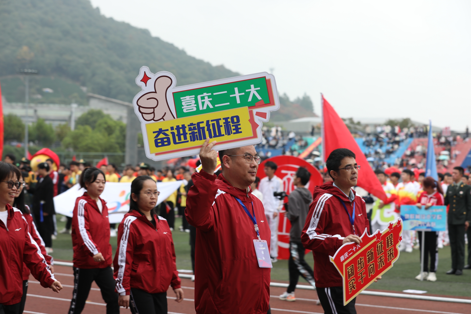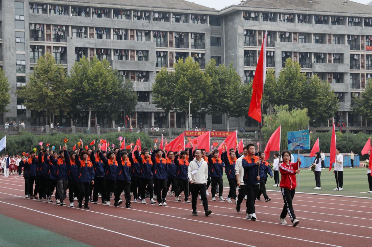 伴着运动员进行曲,22支代表队运动员在旗手的引领下,迈着坚定的步伐从主席台前昂首走过。师生们步履铿锵,口号嘹亮,以饱满的精神状态和运动热情展现出杭科人“手脑双挥、匠心致远”的特色与风采。