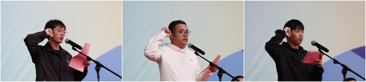 学生运动员代表丁蔡良、教工运动员代表魏志宁、裁判员代表鲍朗朗分别进行赛前宣誓。