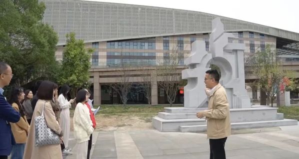 来到新落成的“知行合一”主题雕塑前,谢列卫分享了他对知行合一的深刻理解。主题雕塑以中国传统文化的重要符号之一“鲁班锁”为主题形象,以“知”与“行”两个汉字错落咬合和底部书本层叠摆放为整体造型,生动体现职业教育弘扬工匠精神的价值导向。